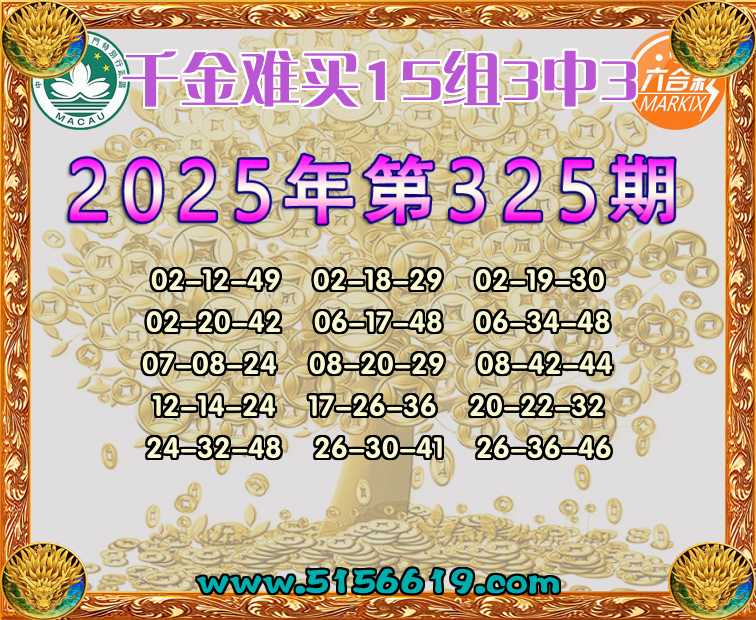 325期:【千金难买】 🍟15组3中3🍟