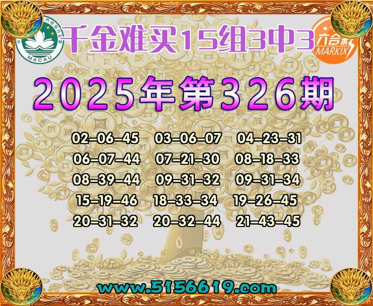 326期:【千金难买】 🍟15组3中3🍟