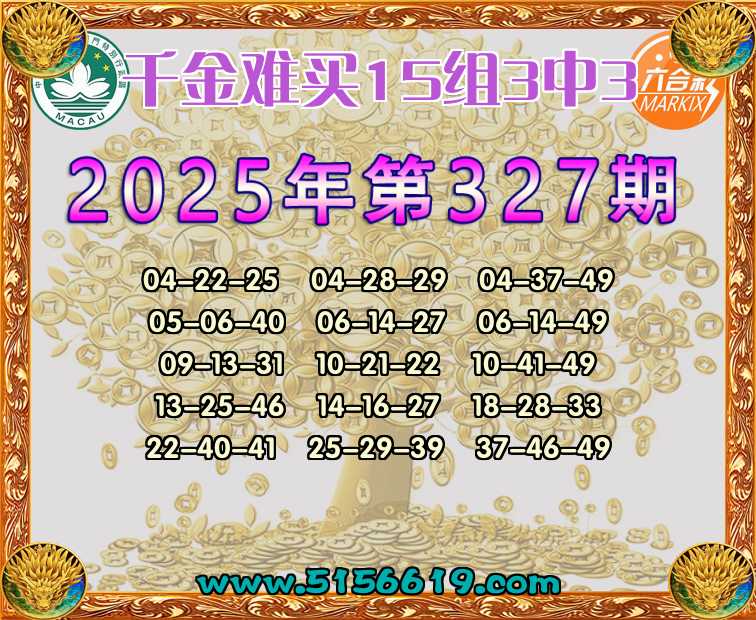 327期:【千金难买】 🍟15组3中3🍟