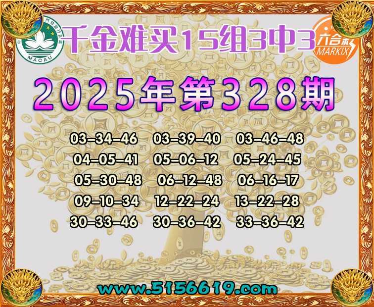 328期:【千金难买】 🍟15组3中3🍟
