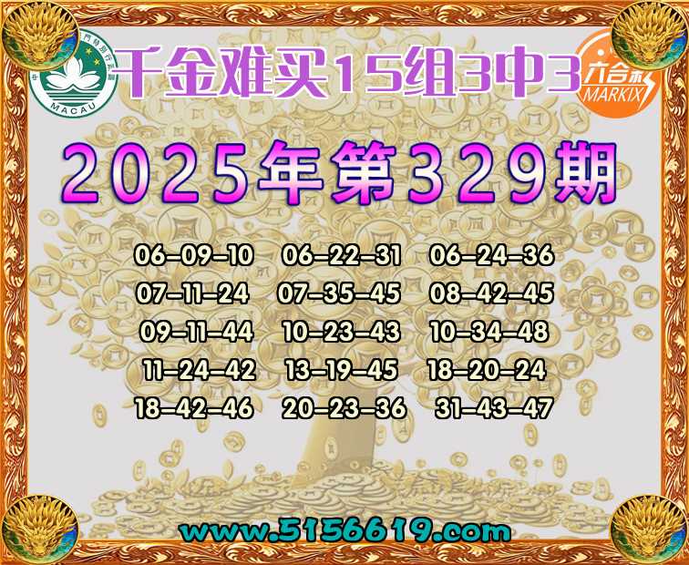 329期:【千金难买】 🍟15组3中3🍟