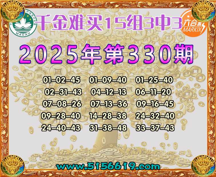 330期:【千金难买】 🍟15组3中3🍟