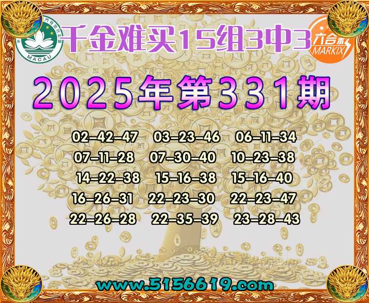 331期:【千金难买】 🍟15组3中3🍟