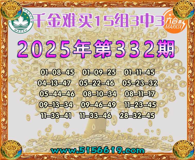 332期:【千金难买】 🍟15组3中3🍟