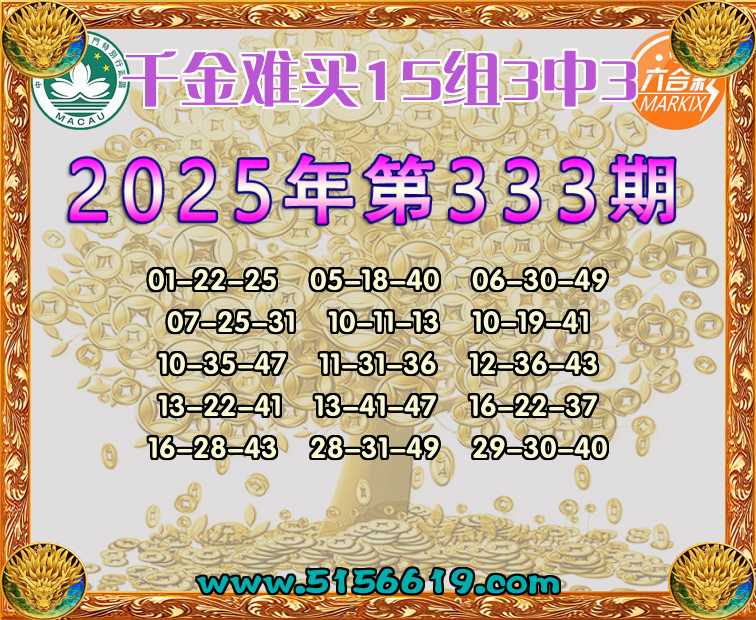 333期:【千金难买】 🍟15组3中3🍟
