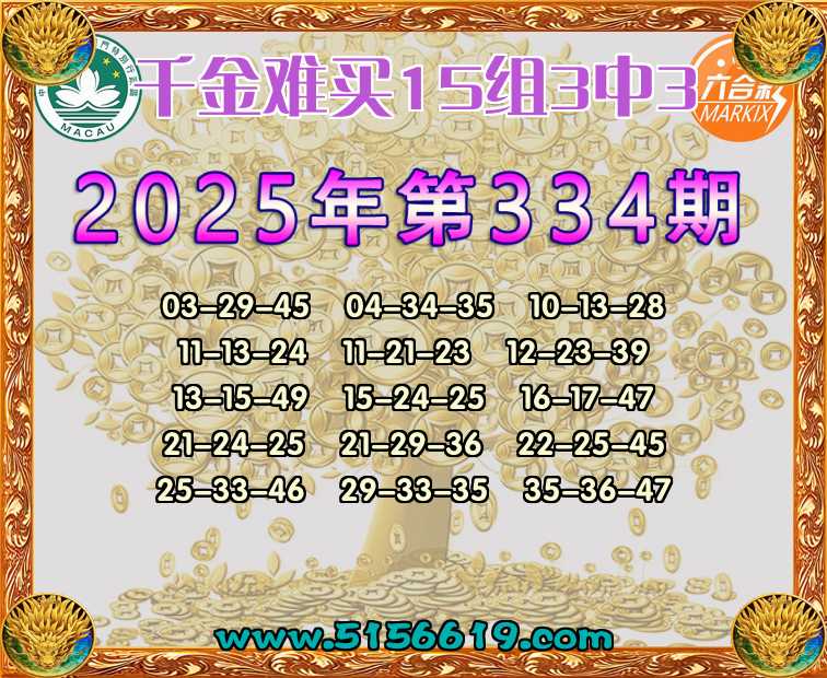 334期:【千金难买】 🍟15组3中3🍟