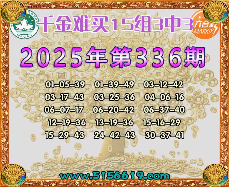 336期:【千金难买】 🍟15组3中3🍟