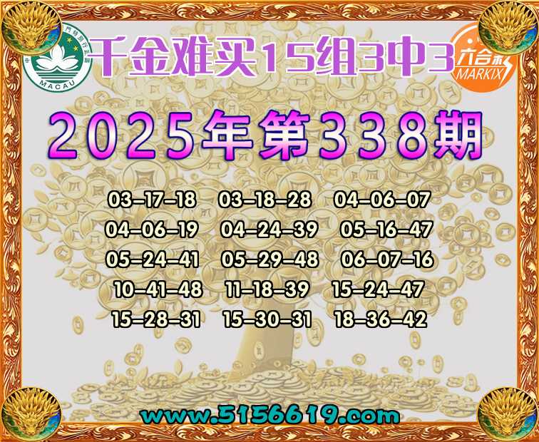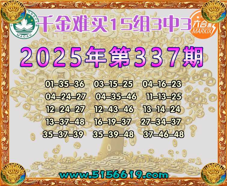 337期:【千金难买】 🍟15组3中3🍟