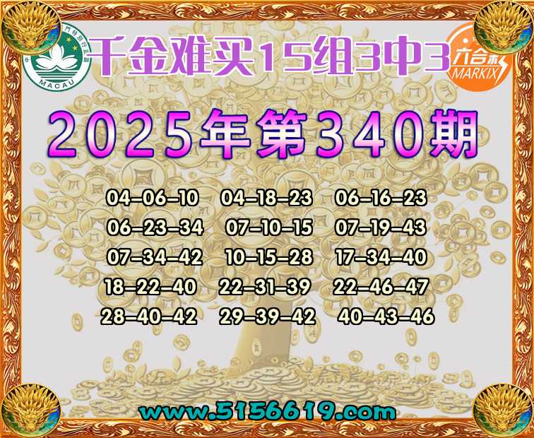 340期:【千金难买】 🍟15组3中3🍟