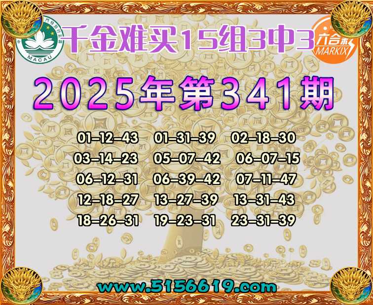 341期:【千金难买】 🍟15组3中3🍟