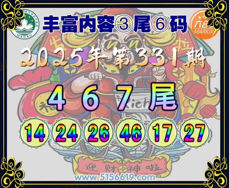 331期: 🥰『丰富内容』 🥰③尾⑥码🥰【467尾】开:26