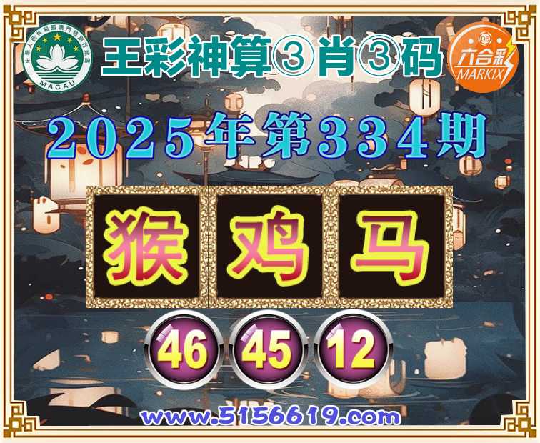 334期:【王彩神算】③肖③码✨【鸡马】【46.45.12】开:猴46