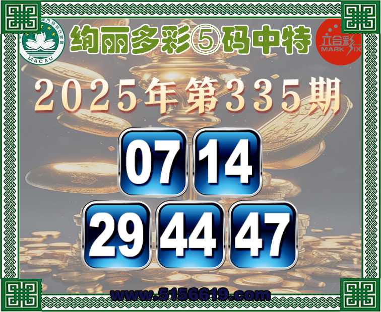 335期:『绚丽多彩』 🚡⑤码中特🚡【07.14.29.44.47】开:44