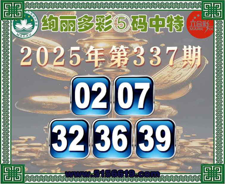 337期:『绚丽多彩』 🚡⑤码中特🚡【02.07.32.36.39】开:09