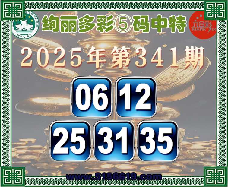 341期:『绚丽多彩』 🚡⑤码中特🚡【06.12.25.31.35】开:06准上榜高手