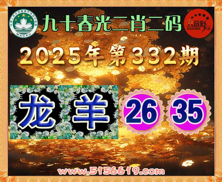 332期:【九十春光】 😍 二肖二码 😍【羊】【26.35】开:龙26