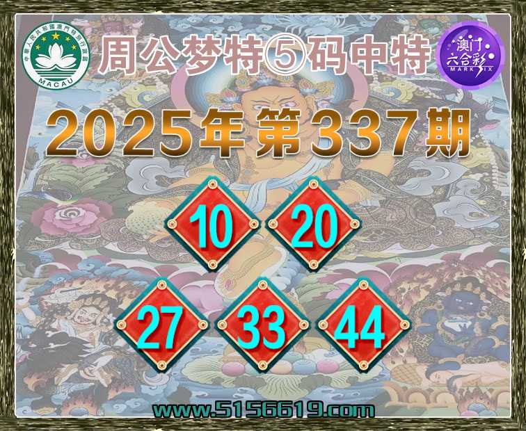337期:【周公梦特】 ☝️⑤码中特☝️【10.20.27.33.44】开:09