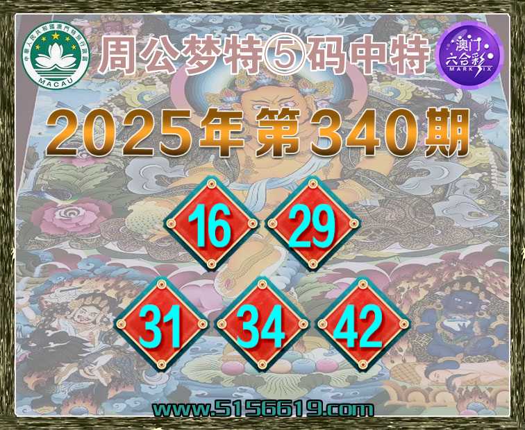 340期:【周公梦特】 ☝️⑤码中特☝️【16.29.31.34.42】开:16准上榜高手
