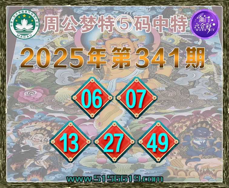 341期:【周公梦特】 ☝️⑤码中特☝️【06.07.13.27.49】开:06准上榜高手