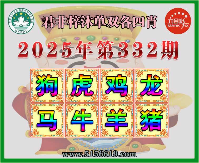 332期:【君非梓沐】 🏆单双各四肖🏆开:龙26