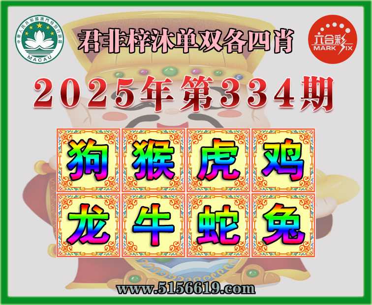 334期:【君非梓沐】 🏆单双各四肖🏆开:猴46