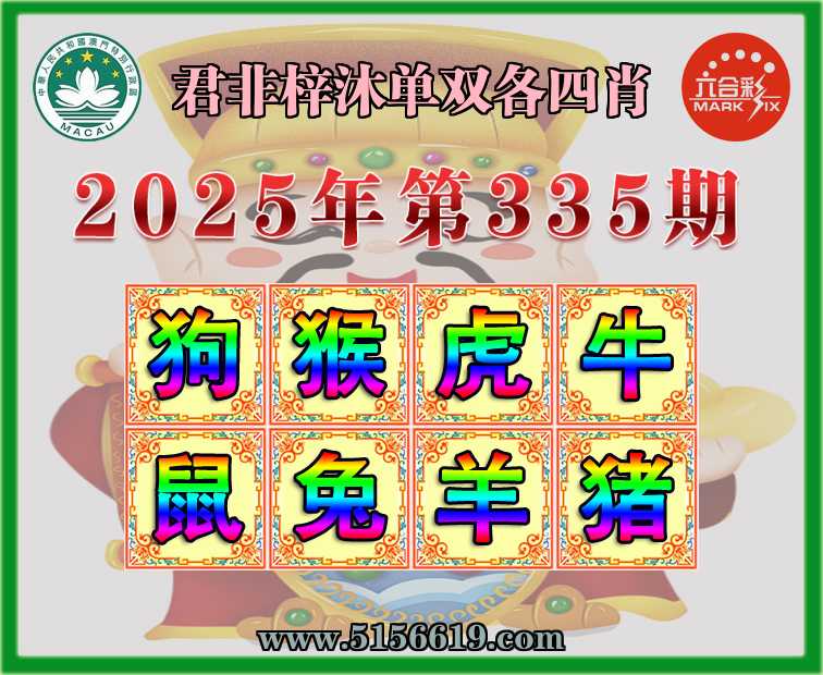 335期:【君非梓沐】 🏆单双各四肖🏆开:狗44